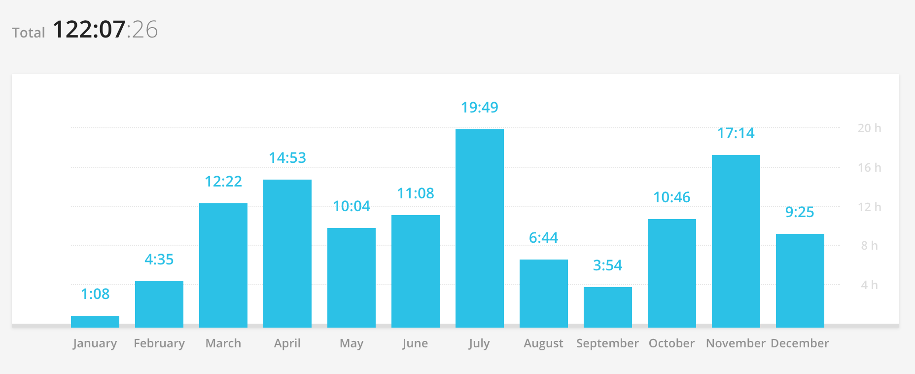 Esimene ja kolmas postitus selles TOP listis on tüüpilisest sügavamad: vaatasin üht probleemi põhjalikult ja tegin selle jaoks kõvasti tööd — tõenäosuste kohta kirjutamisele kulutasin 8 tundi, toitumisele 11 tundi. Muide, kui kulutatud ajast rääkida, siis Toggl näitab blogimisele kulutatud aja kohta sellist graafikut (detsember pole veel lõplik):